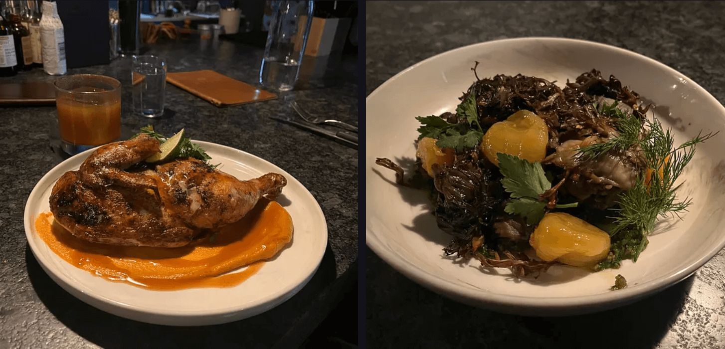 The Moroccan half chicken; the wood-fired maitake mushroom 📷️ Natalie Moore