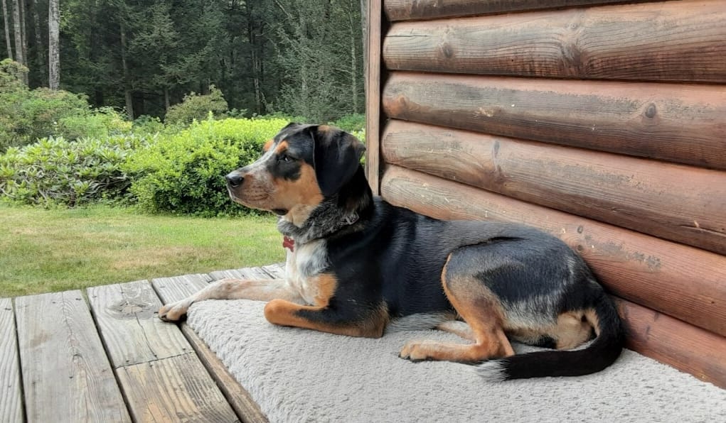 Birdie loves to run around and play with other dogs. She would do well in a home with a fenced-in yard and active humans. Fully potty trained, she has done multiple rounds of puppy classes, and can be left alone at home (free range) without getting into mischief. Birdie is 1.5 years old and is an Australian Cattle Dog/Bluetick Coonhound mix.